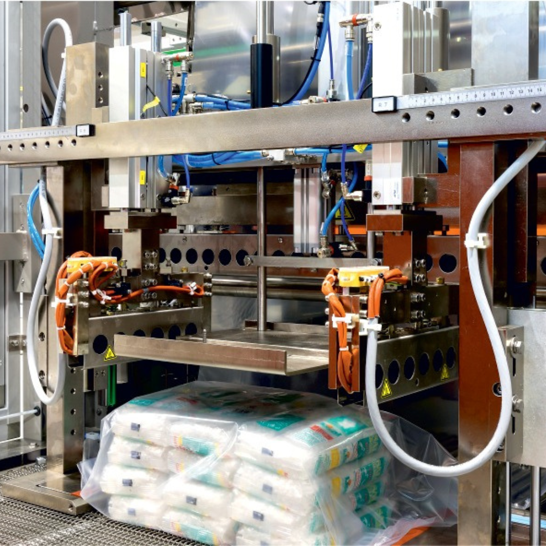 – Adatta ad essere inserita in linee di produzione completamente automatiche ove sia necessario creare “multipack” di più pezzi su più file e/o più strati